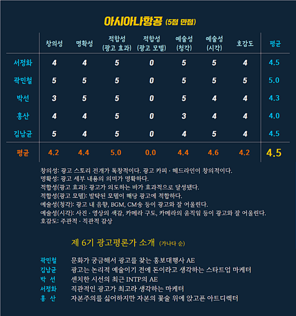 이 작업에는 5기와 6기 광고평론가 총 10명이 참여했습니다.