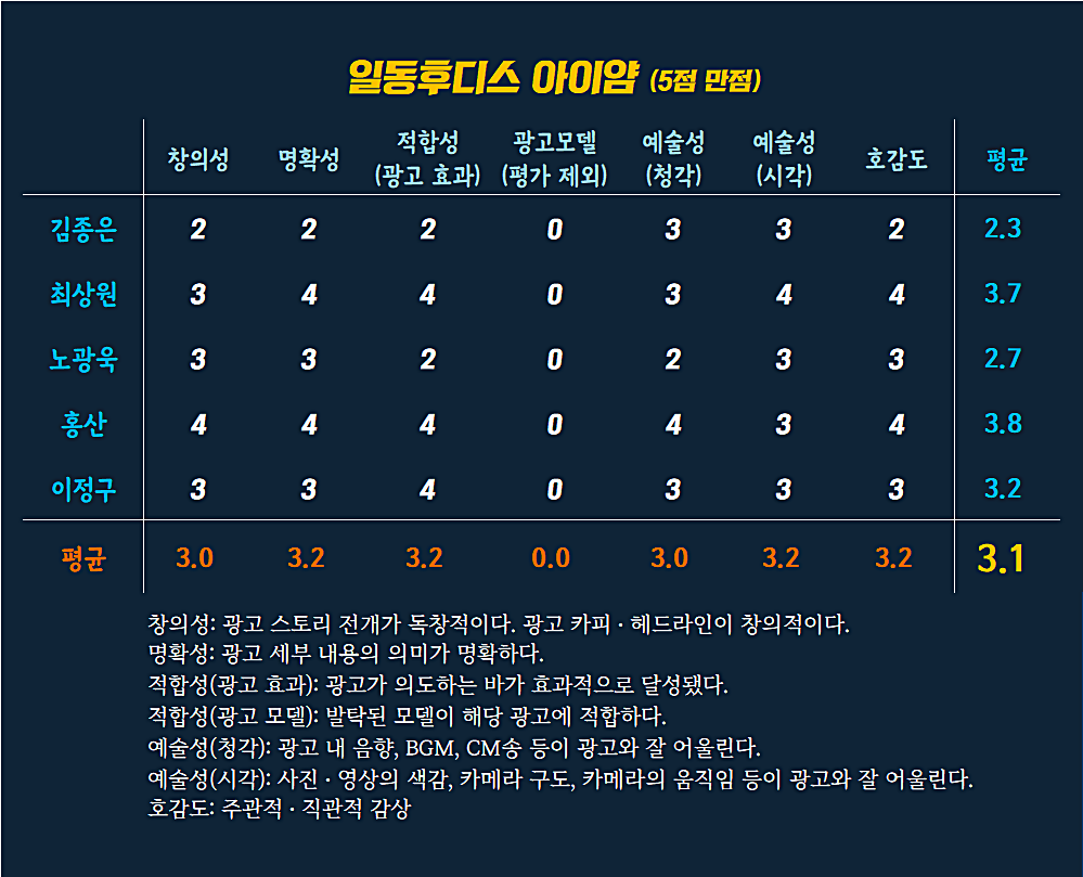 호감도는 3.2점을 기록했고 총 평균은 3.1점으로 평이한 편입니다.