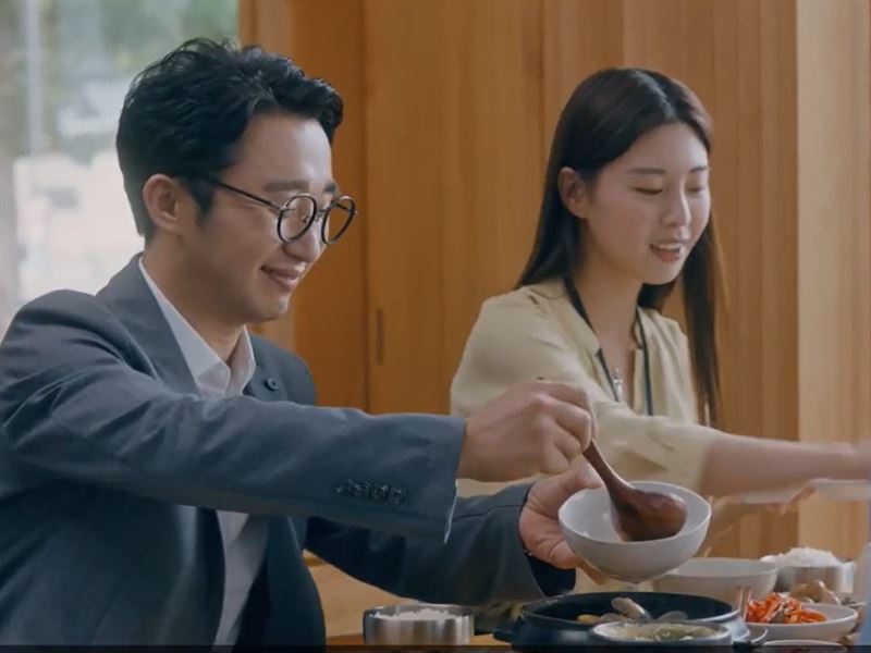 광고가 시작하자마자 음식이 하나씩 등장합니다. 마치 영화 소개 영상 같은 자막과 내레이션도 나옵니다. 한 사람이 반찬과 찌개 등에 거침없이 수저를 넣으며 음식을 먹습니다. 다른 사람들도 같은 방식으로 식사를 합니다.