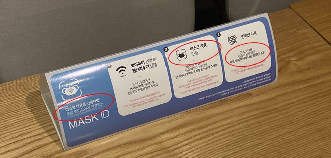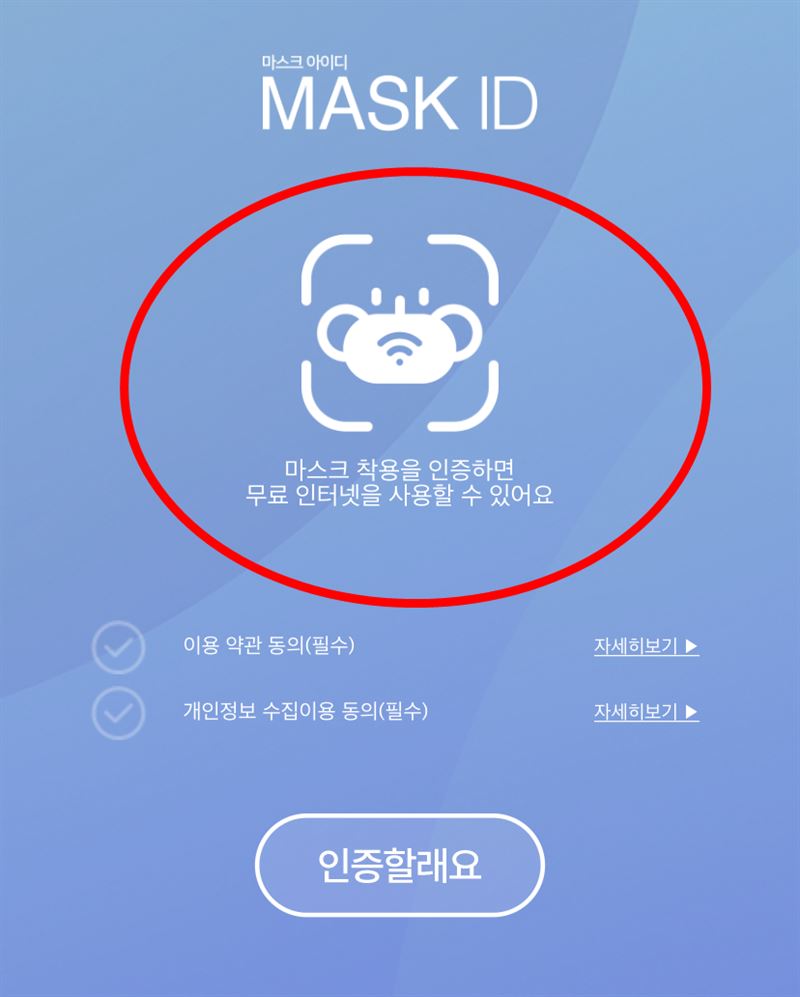 안내문에는 마스크 착용 인증을 하면 와이파이로 연결된다고