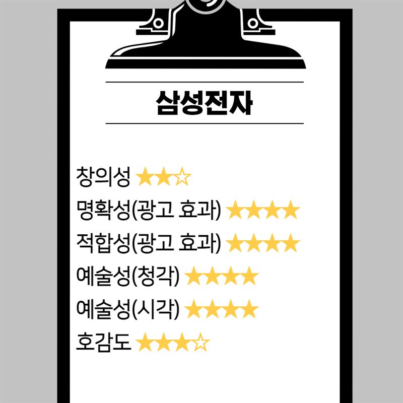 호감도에는 3.5점의 무난한 점수를 부여했고, 창의성을 2.5점으로 최저 평가해 창의성이 부족한 광고라고 판단했습니다.