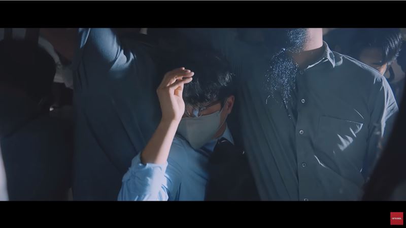 배경음악 선우정아의 '도망가자' 노래가 시작되면서 카메라는 출근길 만원지하철을 향합니다.