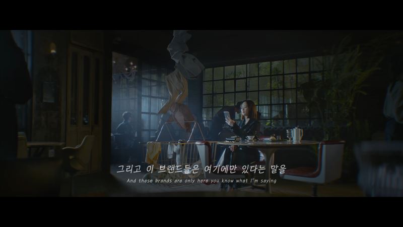 '장바구니에 타임, 마인, 시스템, 더 케시미어를 더한닷'이라는 내레이션이 깔리며 천장에서 해당 브랜드들의 옷들이 떨어져 커다란 장바구니에 담깁니다.