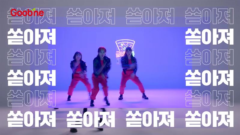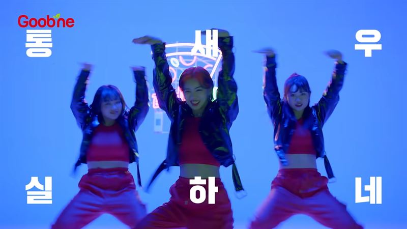 아이키가 등장해 "여보'새우'? 굽네 피자죠?"라고 말하며 양 옆의 댄서들과 함께 노래에 맞춰 춤을 추기 시작합니다.