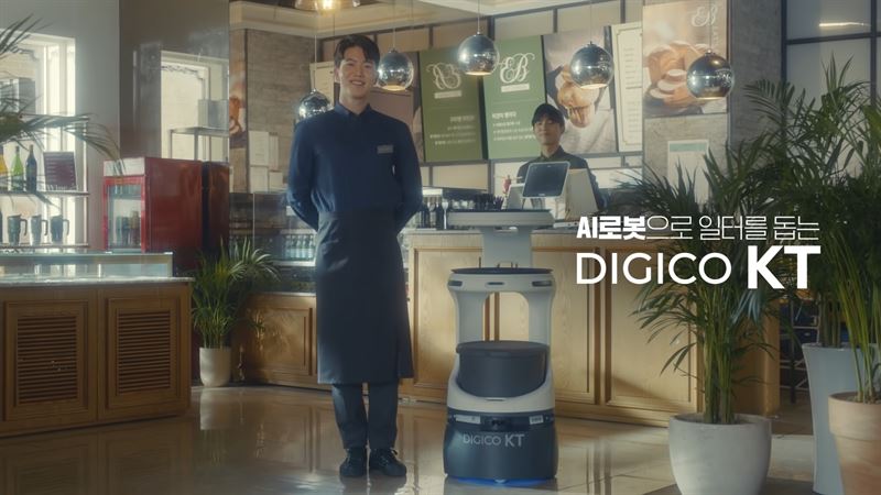 이후 광고는 분위기가 반전되고 '디지코'가 반복되는 흥겨운 음악이 나오며 AI로봇이 가게에서 서빙하는 모습 등 서비스 로봇으로서 가진 기능을 보여줍니다.