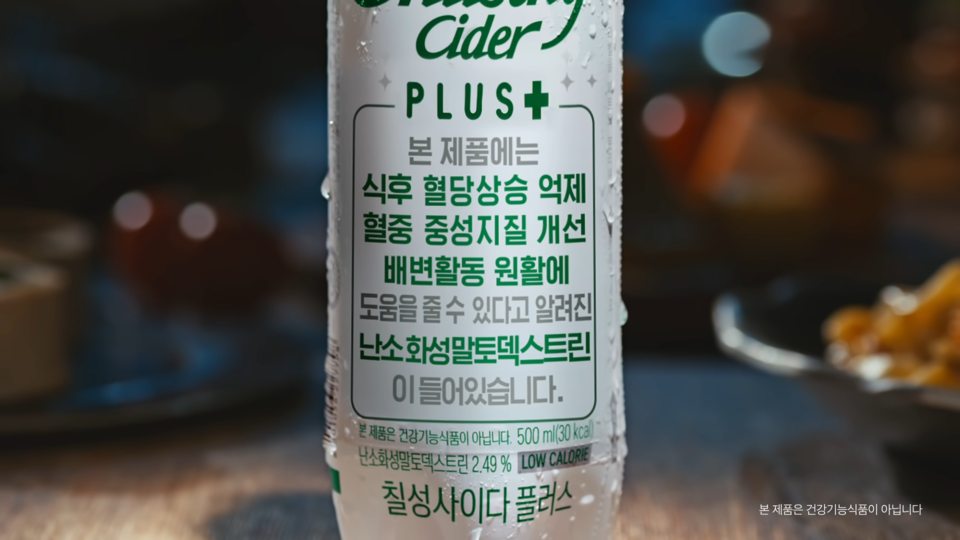 이 상품은 기존 사이다와 다르게 건강식품은 아니지만 혈당상승 억제 등의 효과가 있다고 하는데 광고에서 큰 자막과 흔들림 모션으로 짚어주는 씬이 상당히 좋았다. 엔딩씬은 싸이의 얼굴만 봐도 확 뚫리는 기분이다. 건강에 대한 욕구가 많은 현시대에 다양한 탄산음료가 나오는데 무늬만 건강이 아닌 확실히 차별화된 특징을 잘 어필했다.