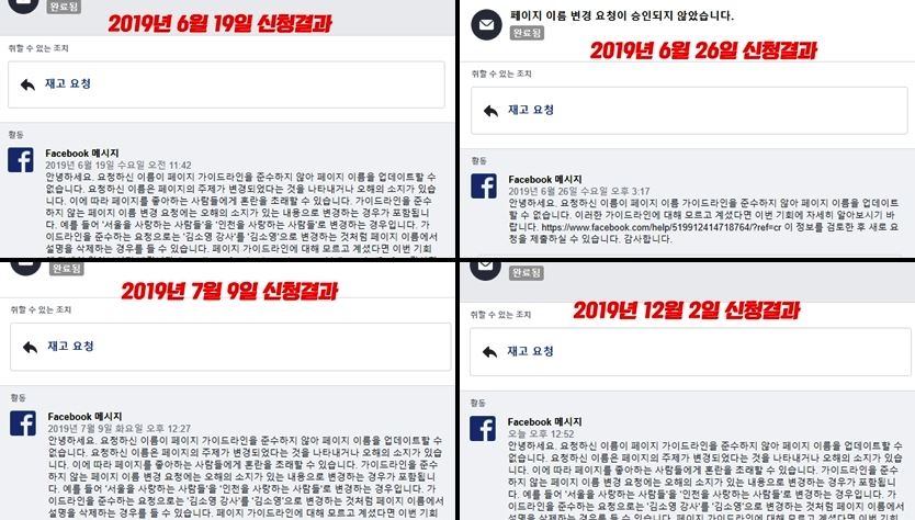 마음을 가다듬고 또 신청을 했다. 세 번째는 서울시청으로부터 받은 제호 변경 승인 서류를 첨부하고 바뀐 제호가 있는 url도 링크했다. 아무리 일이 산더미처럼 쌓여있는 페북 직원이라도 이렇게 서류와 변경 사유를 적시하면 무심코 거르려다가도 한 번 정도는 봐주겠지 하는 마음이 들었다.